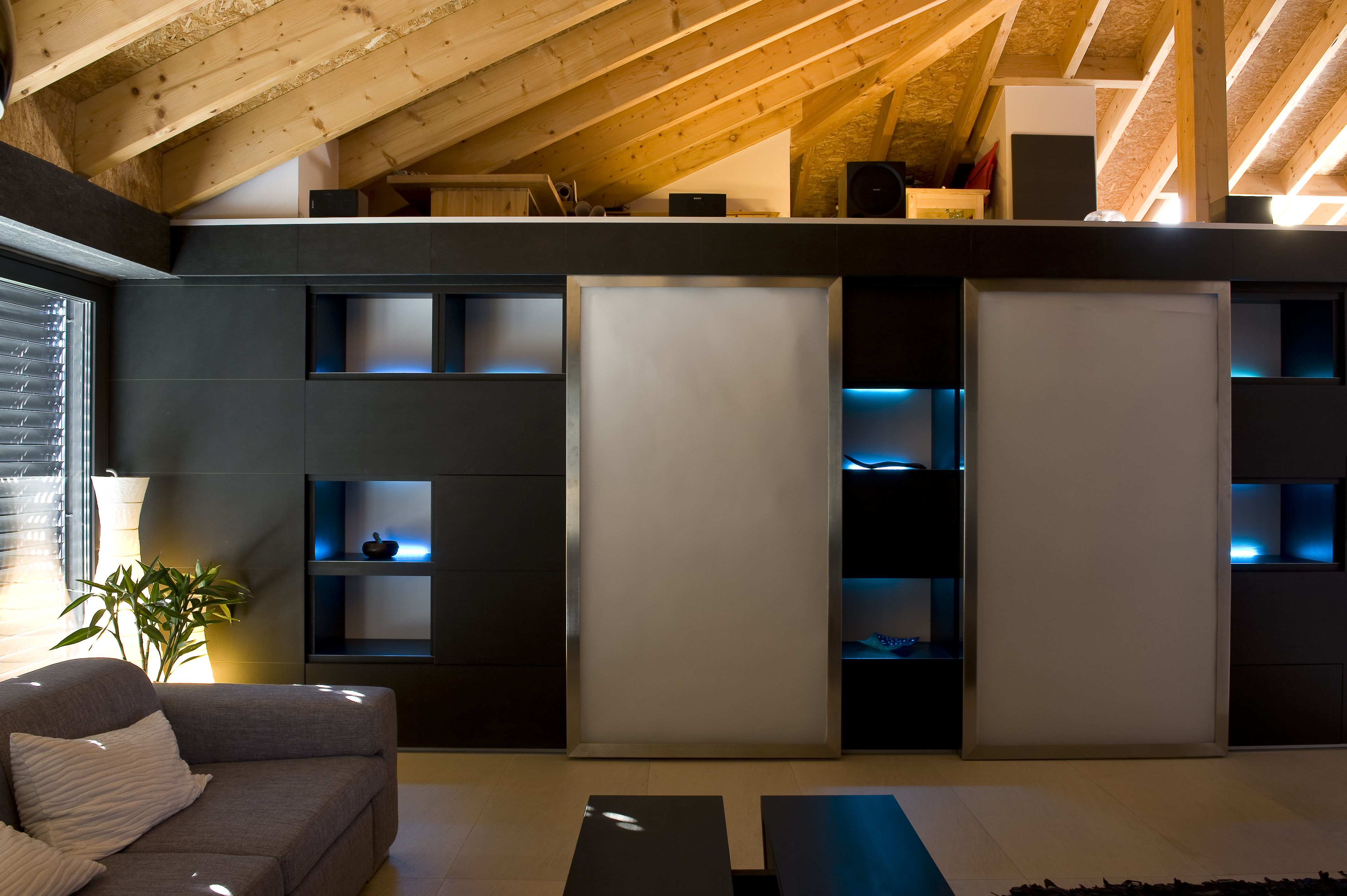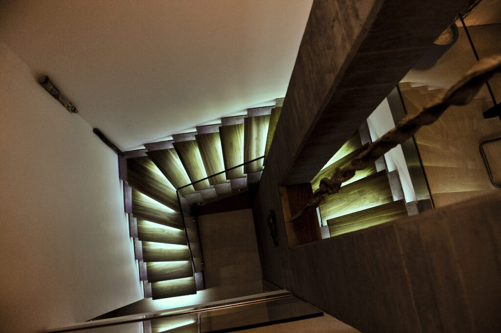 This project transforms a former attic space into a bright, contemporary loft. Despite significant structural and urban constraints, the intervention opens up the volumes, adds a recessed upper level, and optimises every square metre through multifunctional solutions. Optical effects, raw materials and minimalist lines visually expand the space, while large floor-to-ceiling windows and carefully designed lighting create a natural continuity between indoors and outdoors. The result is a sleek, modern duplex, seamlessly integrated into its urban surroundings.