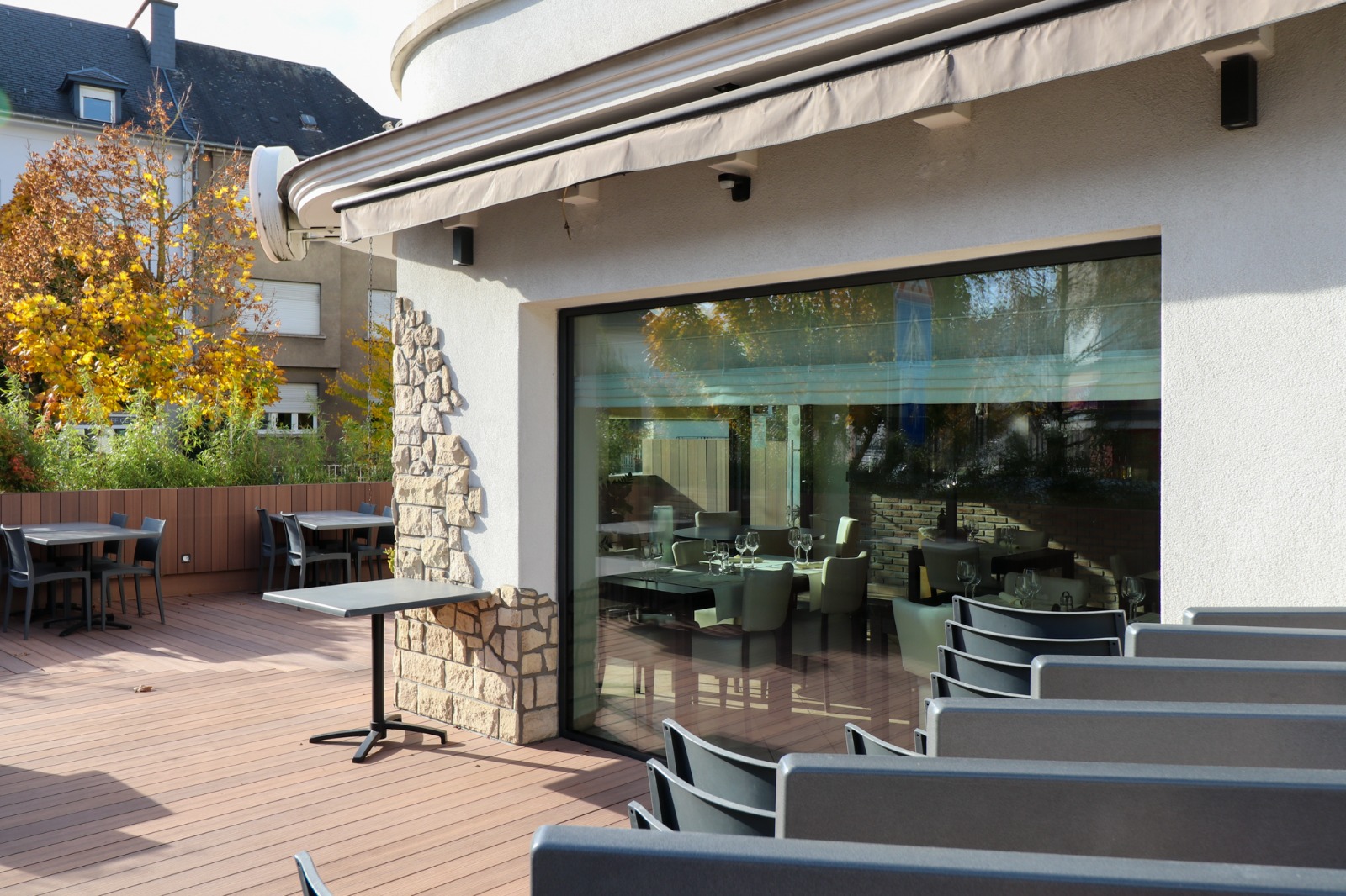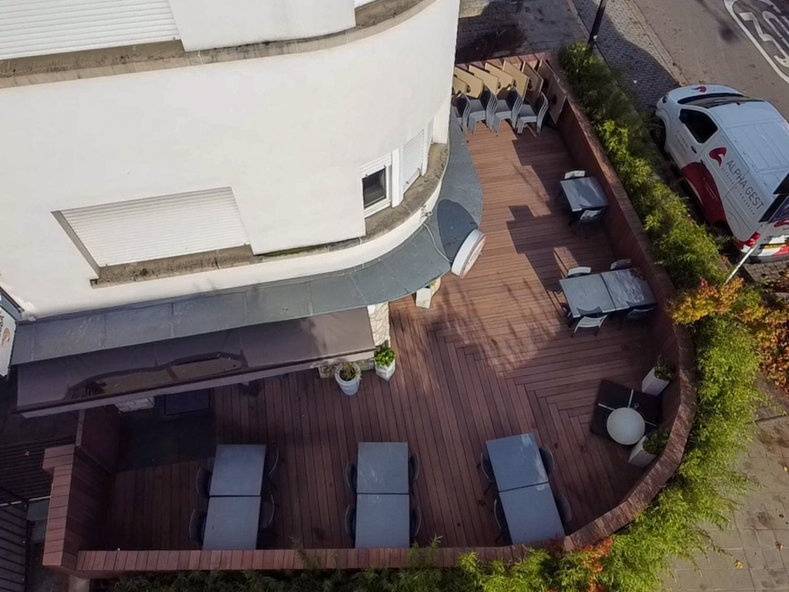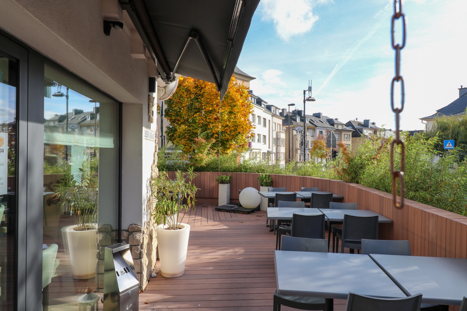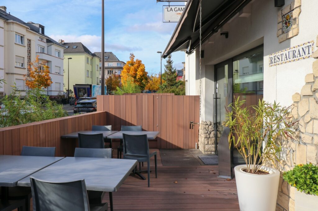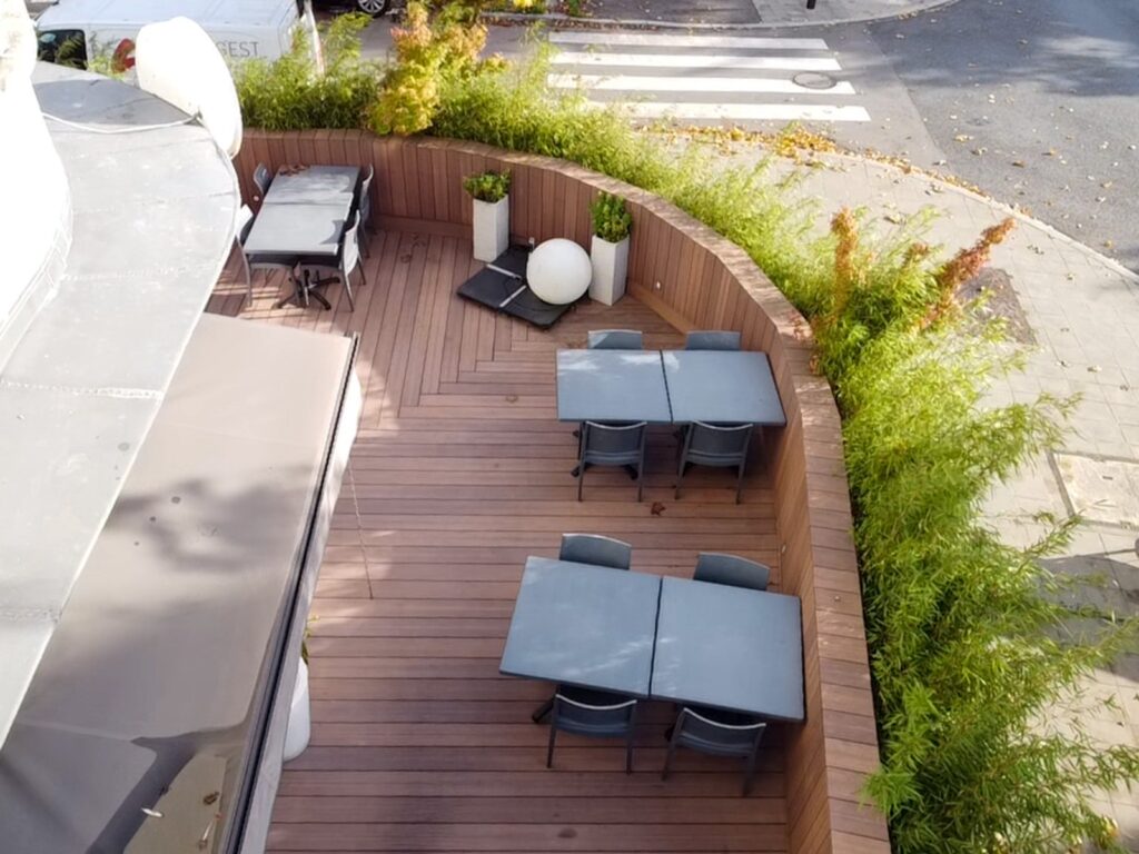 This project consists of a complete redesign of a restaurant terrace, transforming it into a warm and inviting outdoor space. The new structure is built entirely in wood, from the floor to the vertical elements, creating a natural, cohesive atmosphere. A line of bamboo provides gentle visual protection and a sense of intimacy for guests, while the replacement of the window frames helps unify the terrace with the interior of the restaurant. The result is a calm, welcoming and well-defined outdoor area that enhances comfort and ambiance for both clients and staff.