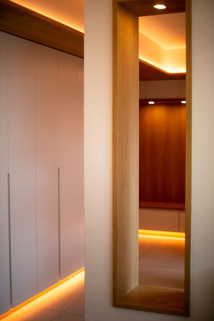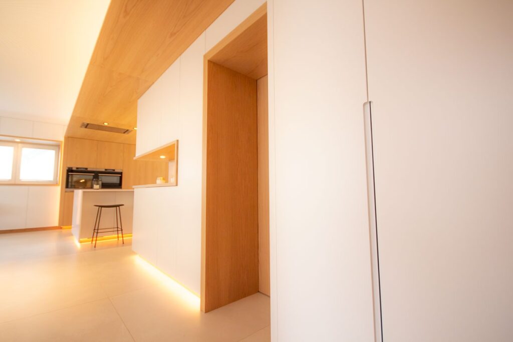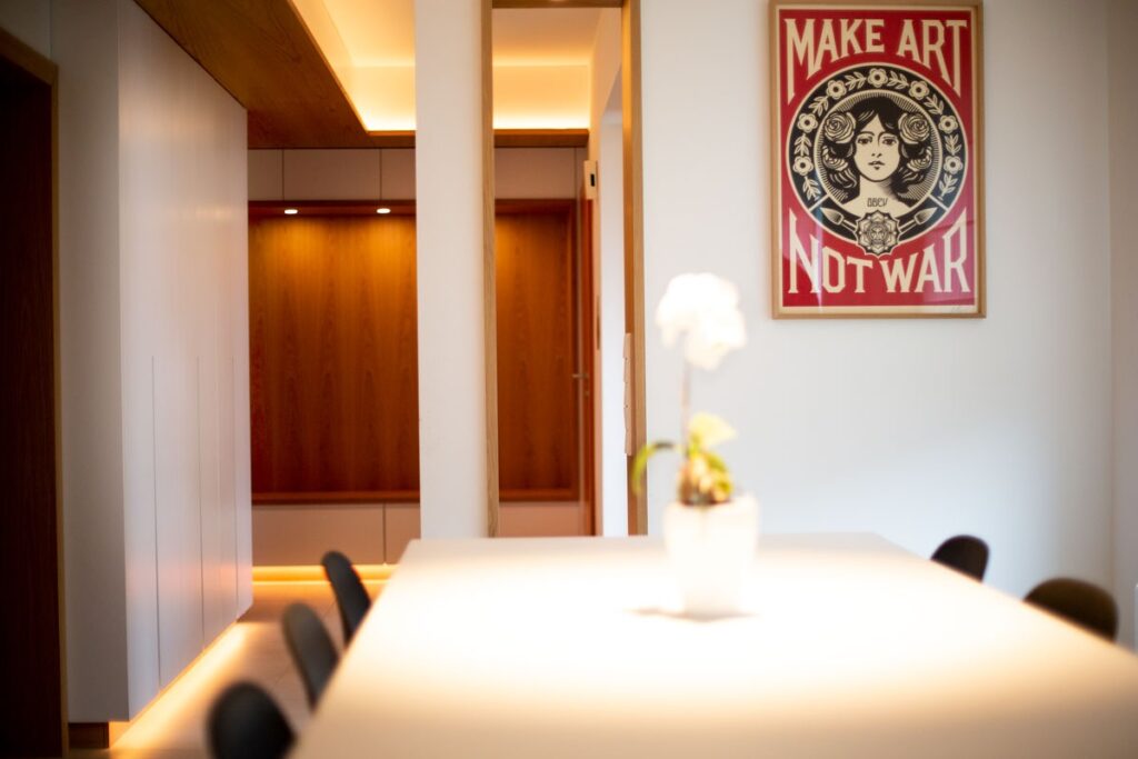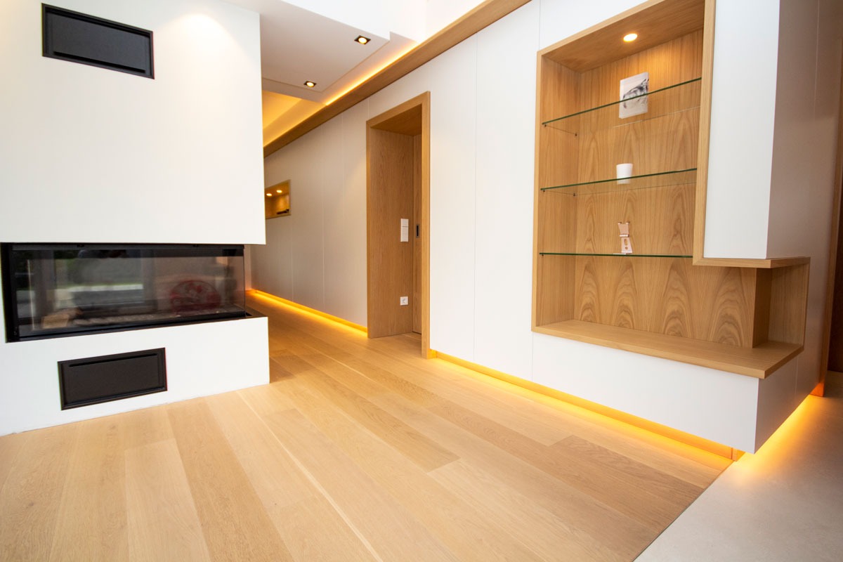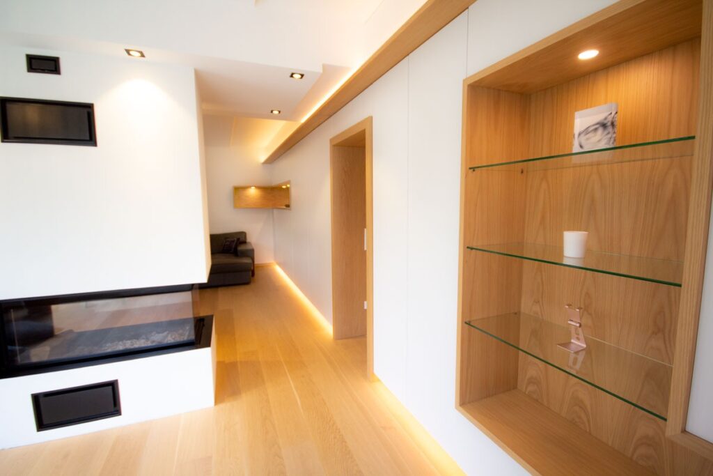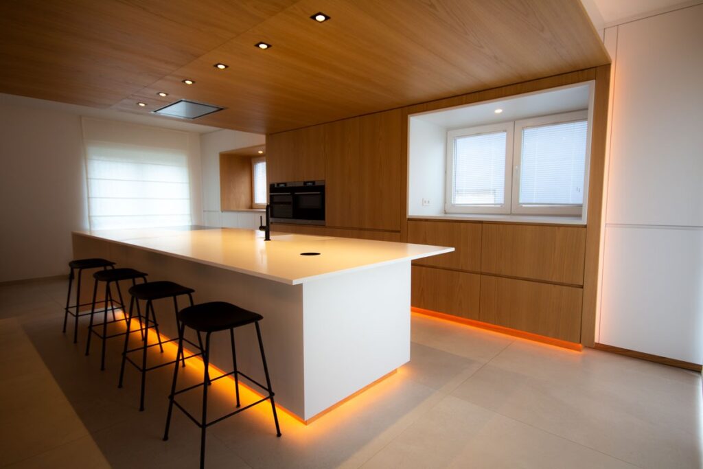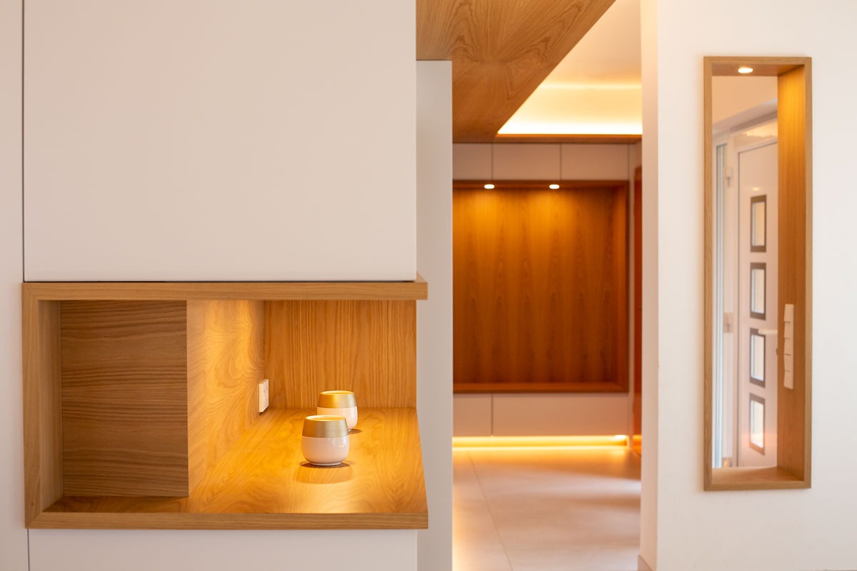 This renovation project redefines the ground floor of a family home in the canton of Luxembourg. After resolving severe humidity issues linked to the original construction, the transformation focused on reorganising the living spaces around a central kitchen, now the heart of daily life. This new layout creates fluid circulation, abundant natural light and clear connections between the entrance, dining room, play area and living room, while preserving intimacy where needed through elements such as a lowered ceiling and a wood-burning stove. Generous openings to the garden, the warm presence of wood and custom-made storage contribute to calm, practical and welcoming interiors. Designed to support family life, the result offers comfort, clarity of use and a strong sense of togetherness in a bright, functional and harmonious home.